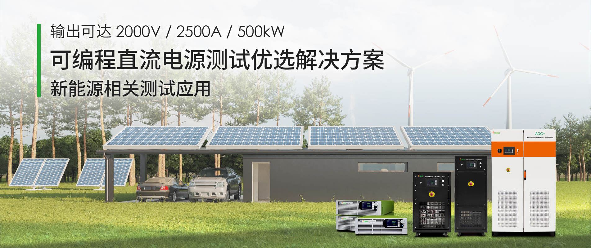ADG+ 系列為一款全新升級的大功率可編程直流電源,擁有低紋波、高精度、反應速度快等特點,透過選配的I-V 曲線功能,可輕松模擬太陽能電池陣列之不同特性,其專利模塊設計加上簡易的主從并機模式,功率可達1800kW,電壓更可達最高2000V,適合用于電動汽車電機、DC/DC 轉換器、儲能系統(ESS)、光伏變流器等測試應用。